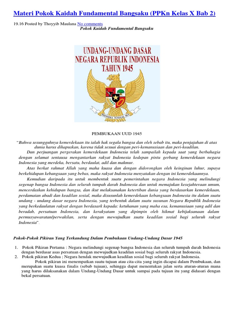 PPKN Pokok Pokok Pikiran UUD 1945 , Sumber : slideshare.net